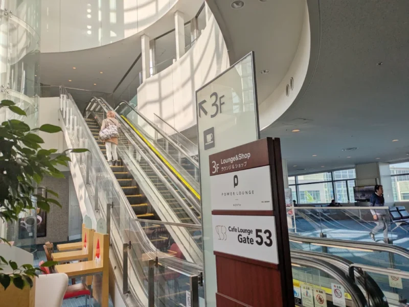 53番近くのPOWER LOUNGE CENTRALは3階にあるので飛行機が少し遠いです。目の前に飛行機を見たい場合は2階にあるラウンジの方がよく見えます。
